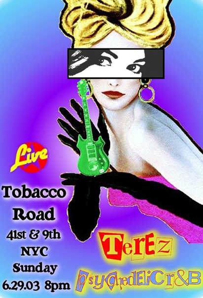 Another Classic Terez poster created by Kevin for the October 9, 2003 Tobacco Road gig.Only last Terez poster for the 10-9-2003 gig.